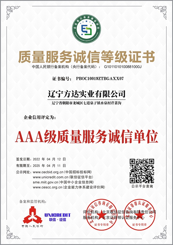 遼寧方達實業有限公司(朝陽市龍城區方達鑄鋼廠),位于遼西朝陽市龍城區工業園區,距離錦朝高速僅2公里,距錦赤高速2.5公里,距朝陽火車站僅3.3公里,公路、鐵路交通十分便利。遼寧方達實業有限公司(朝陽市龍城區方達鑄鋼廠)占地面積為20010平方米,建筑面積為10082平方米,其中廠房面積達4060平方米,辦公室面積為800平方米。現有職工186人,另有分廠一處。是遼西地區大型鑄鋼企業之一。